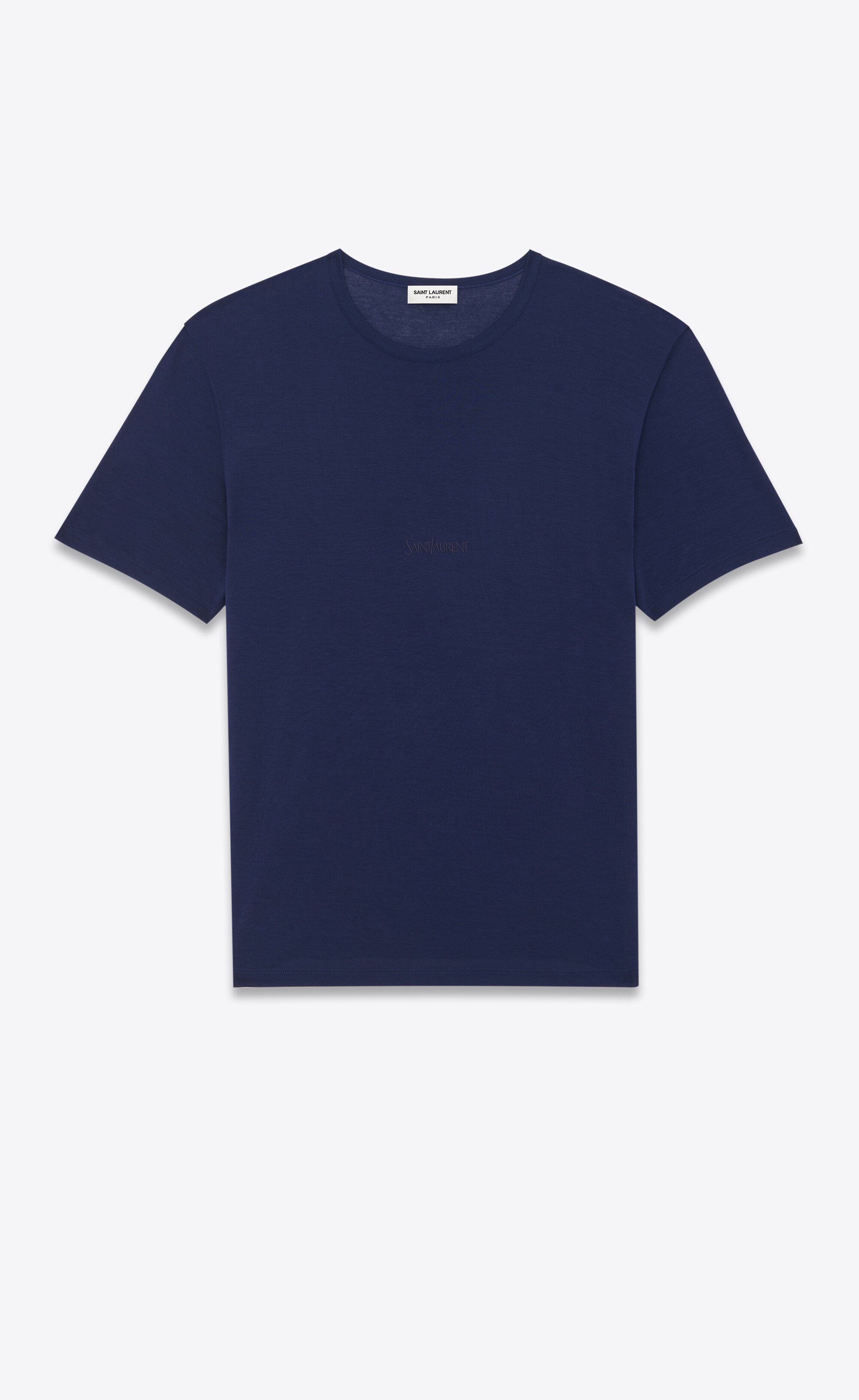 SEMI-SHEER SHORT-SLEEVE CREW-NECK T-SHIRT MADE WITH RESPONSIBLE VISCOSE, FEATURING A TONAL SAINT LAURENT EMBROIDERY ON THE CHEST. - 100% VISCOSE - RESPONSIBLE VISCOSE - CREWNECK COLLAR - STYLE ID 749102Y37IL4573 - MADE IN ITALY