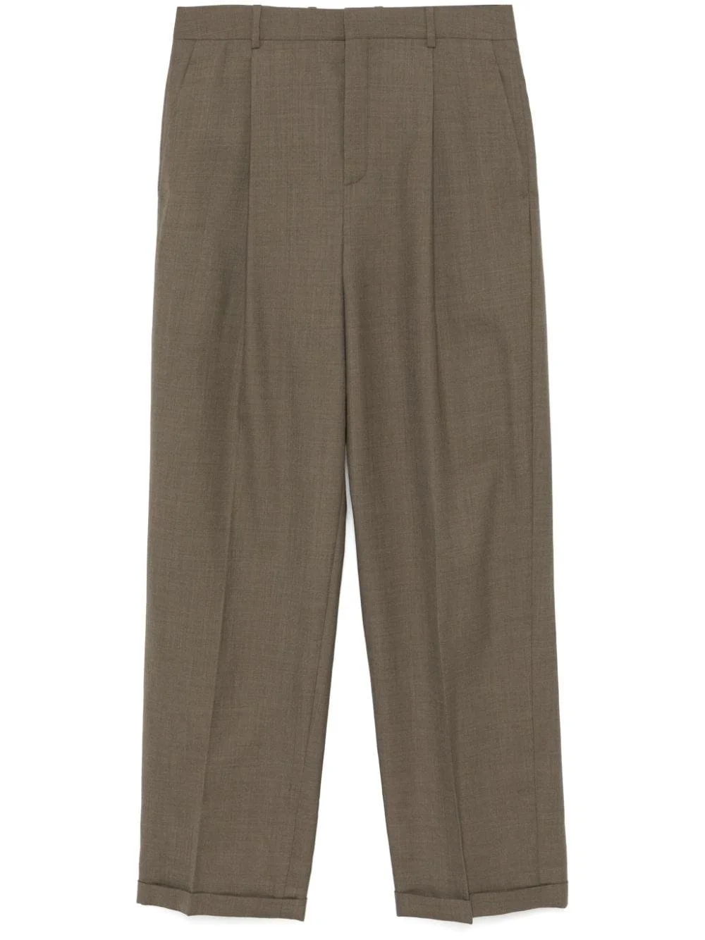 tailored pants Highlights - Earth brown - Wool - Twill weave - Concealed front button, hook and zip fastening - Tailored design - Belt loops - Pleat detailing - Two side slit pockets - Two rear button-fastening pockets - Pressed crease - Straight leg - Turn-up hem Made in Italy Composition Lining: Cotton 97%, Elastane 3% Outer: Wool 100% SIZE & FIT Model measurements Height 6 ft 2 in(1.87 m) Bust/Chest 37.79 in(96 cm) Hips 37.79 in(96 cm) Waist 30.31 in(77 cm) FittingInformation Designed for a relaxed straight leg, allowing a comfortable and loose fit over the leg Made from a midweight stretch fabric, this piece offers elasticity and flexibility when worn