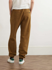 Though known best for its tailoring, SAINT LAURENT has an eye for designing quality basics with a focus on comfort and versatility. These sweatpants are made from soft cotton-jersey and have elasticated cuffs that create a retro-inspired, tapered shape. Size & Fit - Fits true to size. Take your normal size - Tapered leg, mid-rise style - Mid-weight, slightly stretchy fabric - Model is shown wearing a S - Model measures: waist size 30, height 6'1"/ 185cm Details & Care - Brown cotton-jersey - 100% cotton