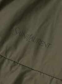 SAINT LAURENT's blouson jacket is modelled after vintage windbreakers. Designed with dropped shoulder seams for a more relaxed fit, it's been made in Italy from lightwieght shell and has a packable hood for weather protection. The drawstring hem allows you to adjust the fit. Size & Fit - Those who are above 6'1"/ 185cm may wish to take the next size up - Designed for a boxy fit - Slightly short in the sleeves - Drawcord hem - Lightweight, non-stretchy fabric - Model is shown wearing an IT 48 - Model measures: chest 36"/ 92cm, height 6'2"/ 188cm Details & Care - Army-green shell - Zip fastening - 100% polyester; pocket lining: 100% cotton - Unlined - Machine wash