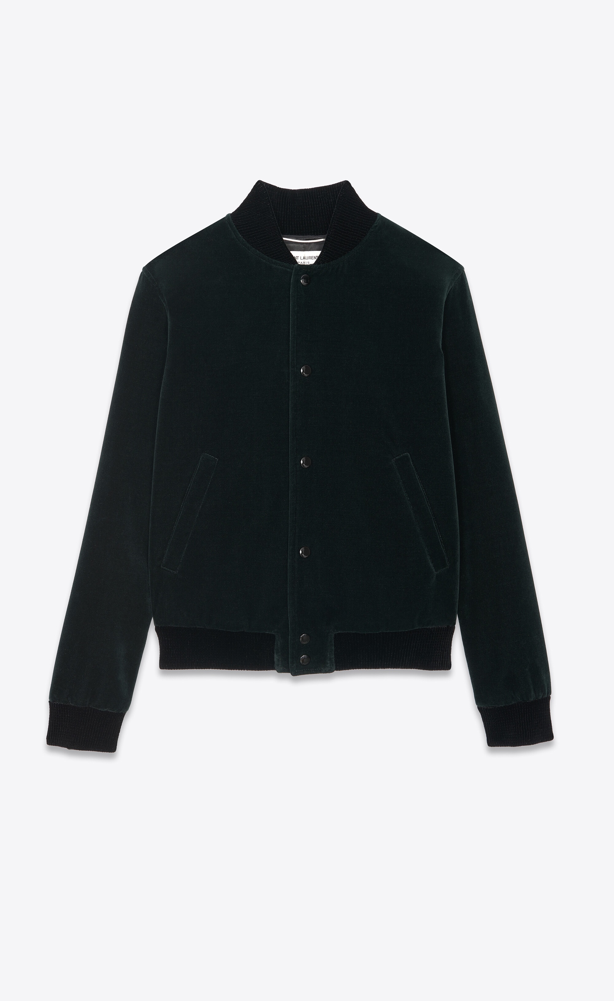 TEDDY JACKET MADE WITH ORGANIC COTTON, WITH RIBBED COLLAR, FRONT BUTTON CLOSURE AND TONAL SAINT LAURENT SIGNATURE ON THE BACK. - 100% COTTON - ORGANIC COTTON - CUPRO AND COTTON LINING - FRONT BUTTON CLOSURE - RIBBED COLLAR - STYLE ID 711490Y615W3685 - MADE IN ITALY