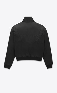 ZIP-UP BOMBER JACKET WITH A STAND COLLAR AND DIAGONAL SHOULDER BANDS, FEATURING A SAINT LAURENT EMBROIDERY ON THE CHEST. - 59% VISCOSE, 41% SILK - ACETATE AND CUPRO LINING - FRONT ZIP CLOSURE - TWO WELT POCKETS AT THE FRONT - RIBBED CUFFS AND HEM - STYLE ID 779952Y2D601000 - MADE IN ITALY