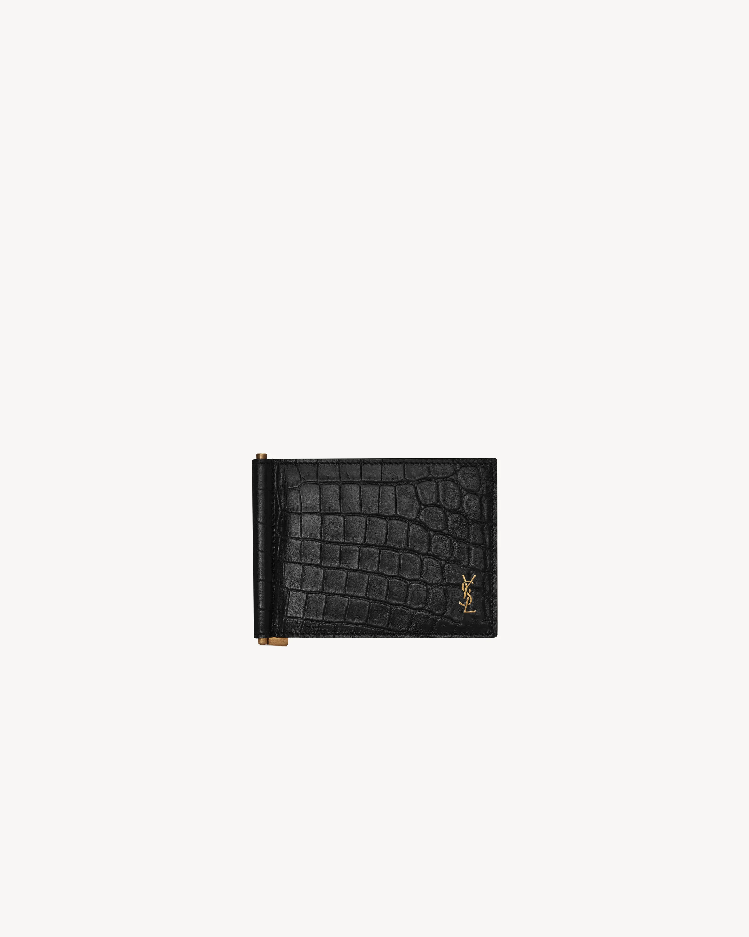TINY CASSANDRE BILL CLIP WALLET IN CROCODILE-EMBOSSED MATTE LEATHER