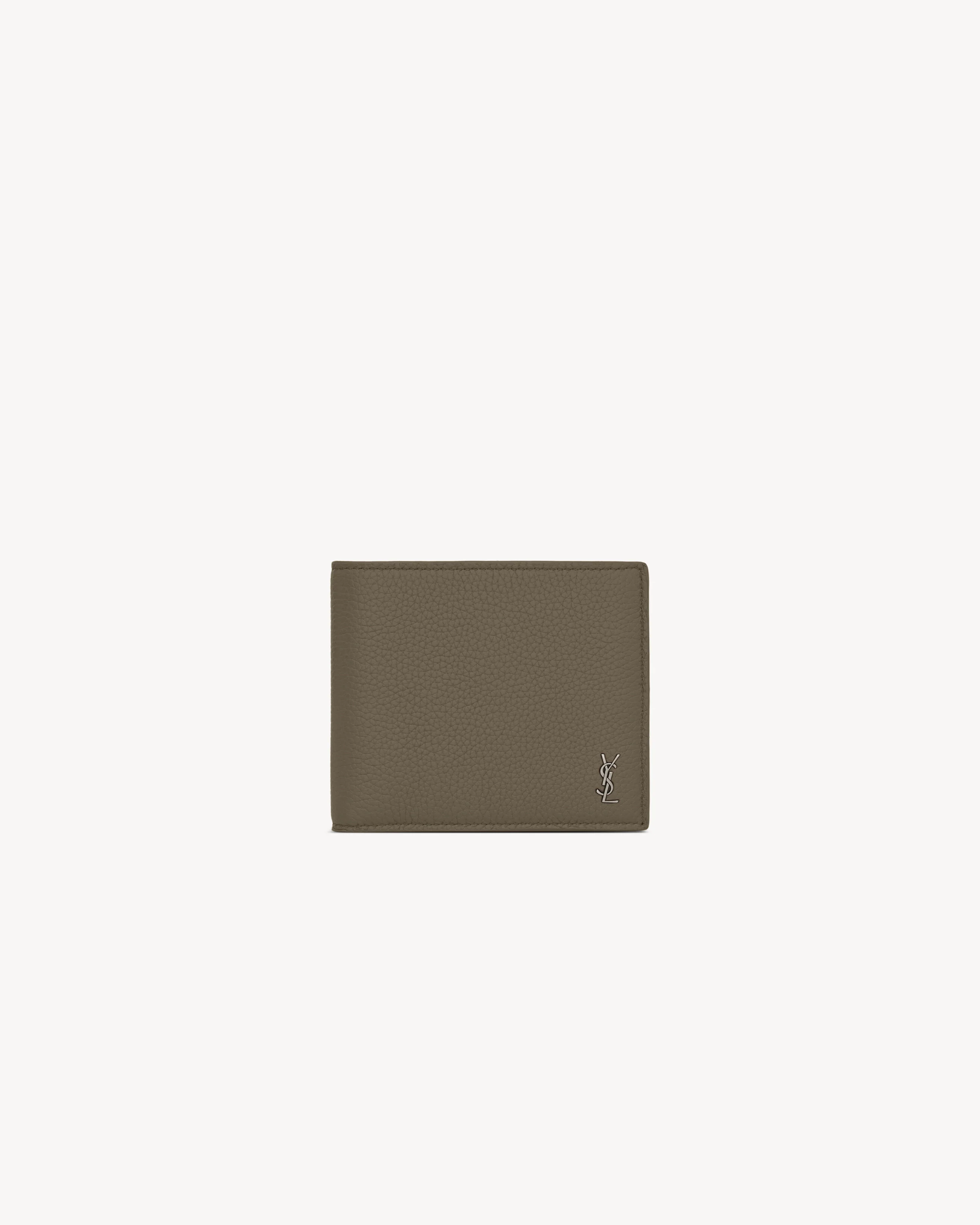 SINGLE-FOLD WALLET DECORATED WITH SMALL METAL YSL INITIALS. - DIMENSIONS: 11 X 9.5 X 2.5 CM - SILVER-TONED METAL HARDWARE - INTERIOR: TWO BILL COMPARTMENTS, EIGHT CARD SLOTS, TWO RECEIPT COMPARTMENTS - LEATHER LINING - CALFSKIN LEATHER, METAL - STYLE ID 607727DTI0E2952 - MADE IN ITALY