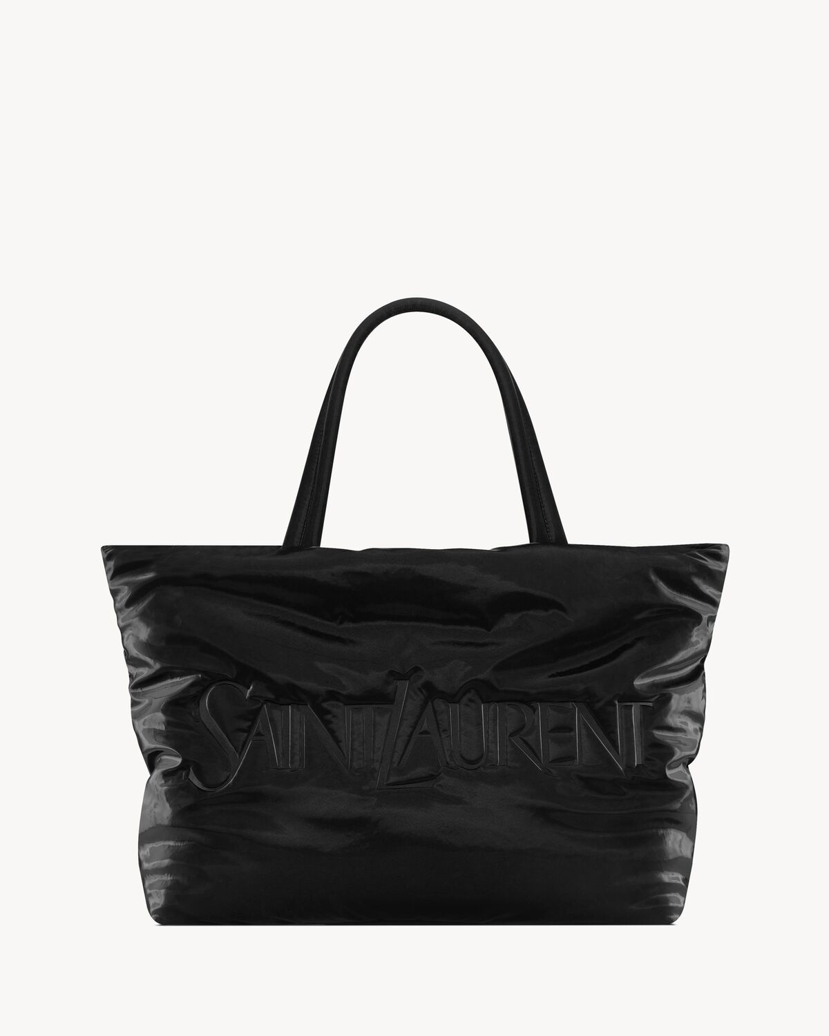 WIDE TOTE BAG IN SILKTECH CANVAS WITH A COMPLETE LEATHER LINING AND EMBOSSED SAINT LAURENT SIGNATURE. - LEATHER LINING - MATTE BLACK HARDWARE - ONE ZIP POCKET - DIMENSIONS: 41/50 X 34 X 17 CM / 16.1/19.7 X 13.4 X 6.7 - HANDLE DROP: 19 CM / 7.5 - POLYAMIDE, CALFSKIN LEATHER, BRASS - STYLE ID 756269FACY81000 - MADE IN ITALY