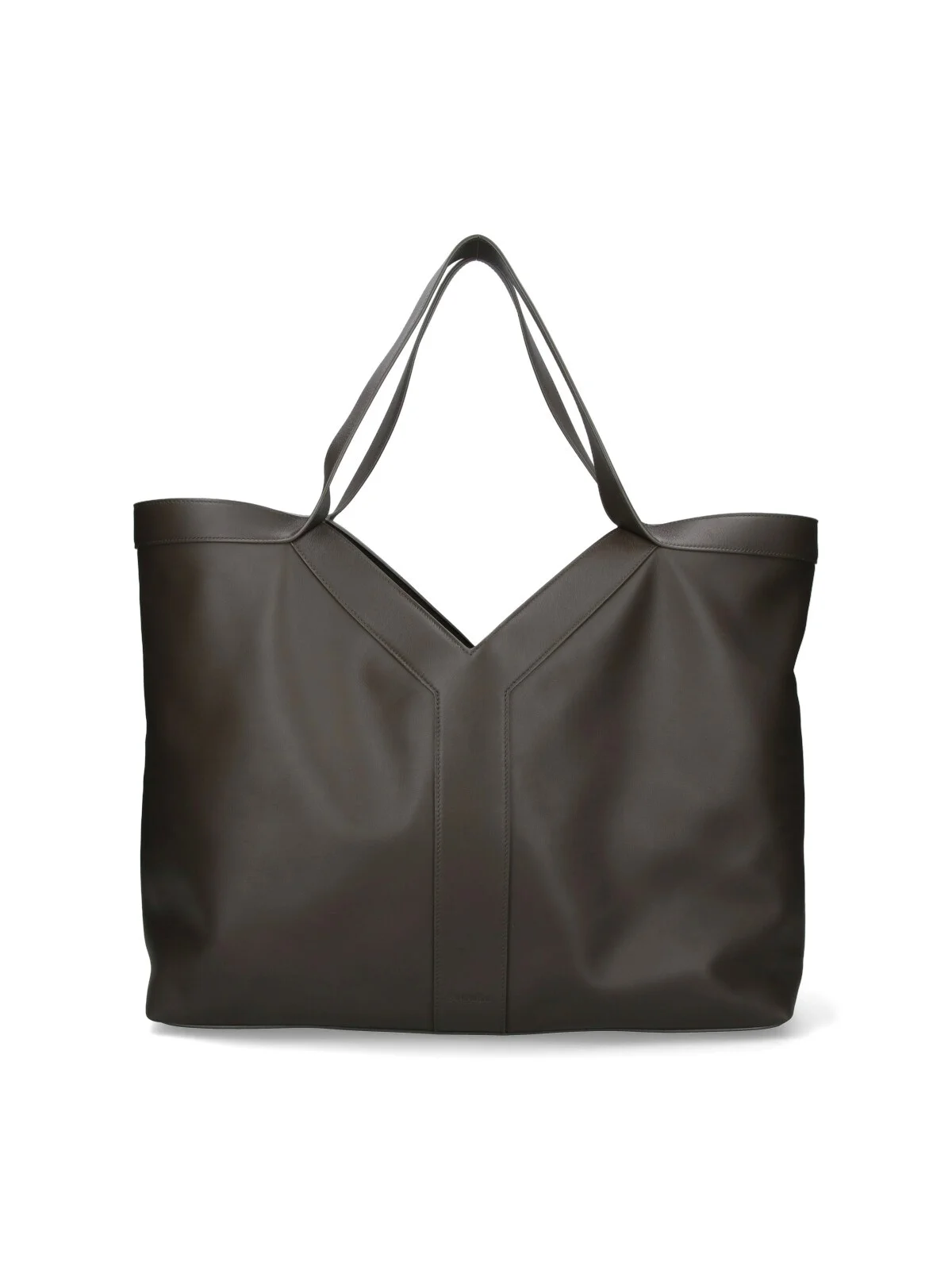 SAINT LAURENT 'Y' LARGE TOTE BAG IN DARK GREEN CALF LEATHER, TWO HANDLES, HOOK CLOSURE, FRONT LOGO, INNER ZIP POCKET, MAIN INNER COMPARTMENT. PRODUCT INFO PRODUCT CODE 820672 AAE5O3212 COMPOSITION: 100% CALF LEATHER SIZE AND FIT: H 38 X W 46 X D 18 CM MADE IN: ITALY - HANDLE DROP: 33 CM