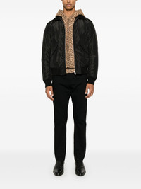 silk bomber jacket Highlights - Black - Silk - Front zip fastening - Classic collar - Long sleeves - Ribbed cuffs and hem - Two side stud-fastening pockets - Internal patch pockets - Full lining - Straight hem Made in Italy Composition Lining: Polyamide 100%, Cotton 100% Outer: Wool 100%, Silk 100% SIZE & FIT Model measurements Height 6 ft 2 in(1.87 m) Bust/Chest 38.18 in(97 cm) Hips 36.61 in(93 cm) Waist 29.13 in(74 cm) FittingInformation Designed for a regular fit, allowing for a comfortably loose fit throughout the body The ribbed hem offers a close, comfortable fit Made from a padded non-stretch fabric, giving it no natural elasticity Washing instructions Do Not Wash/Do Not Dry Clean