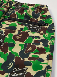 Fans of the Japanese streetwear label BAPE® will recognise its camouflage pattern on SAINT Mxxxxxx's trousers. They're made from shell and finished with sporty webbing trims printed with both labels' logos. Wear them with an easy graphic tee. Size & Fit - Fits true to size. Take your normal size - Relaxed-straight leg, mid-rise style - Adjustable at the waist - Model is shown wearing a M - Model measures: waist size 32, height 6'0"/ 183cm Details & Care - Multicoloured camouflage-print shell, white and black webbing - 100% polyamide - Hand wash