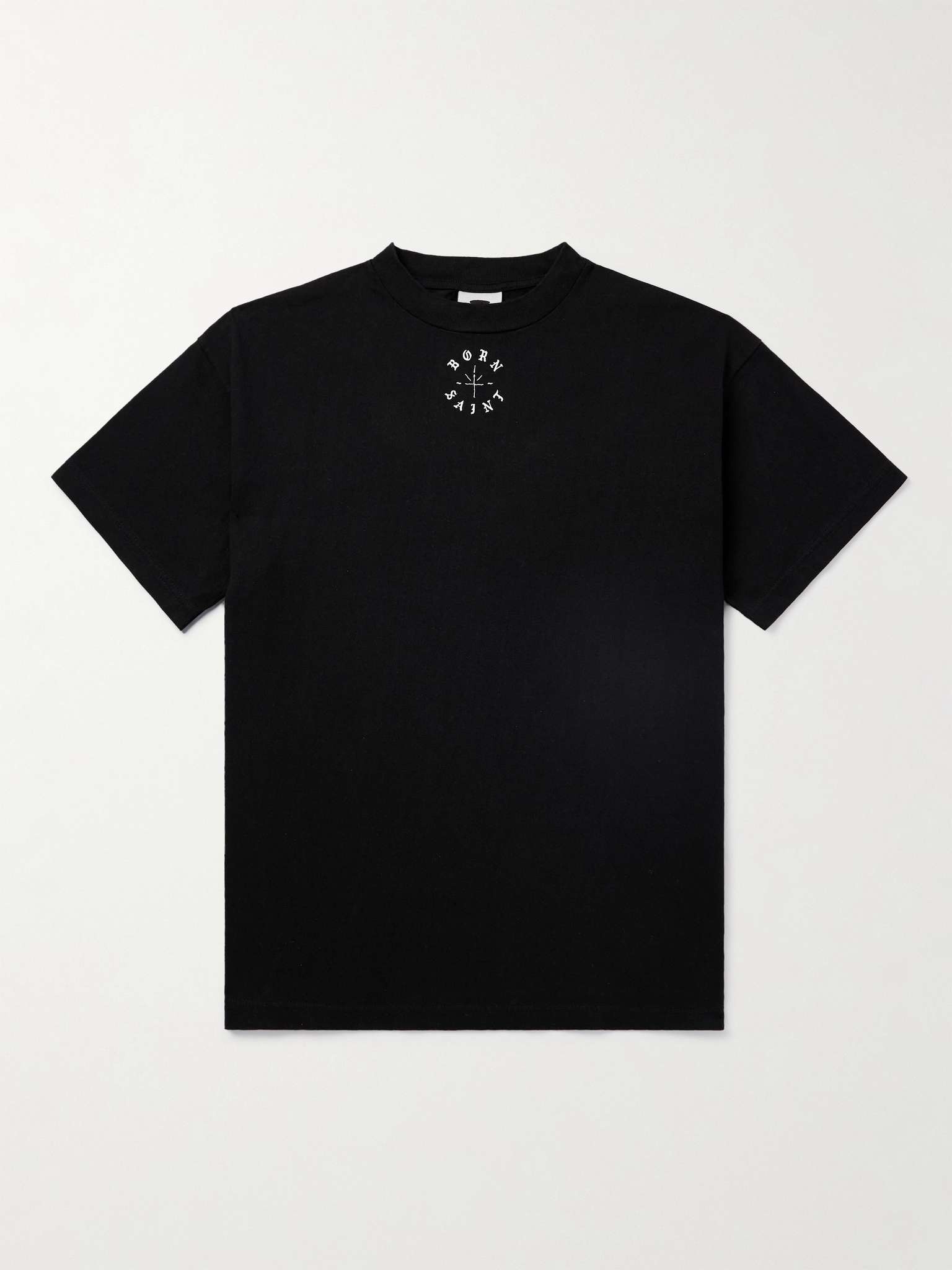 SAINT Mxxxxxx's T-shirt is part of its ongoing collaboration with Born X Raised. It's cut from cotton-jersey and features a co-branded logo at the chest. Wear it with your favourite vintage jeans. Size & Fit - Fits true to size. Take your normal size - Designed for a slightly loose fit - Lightweight, stretchy fabric - Model is shown wearing a M - Model measures: chest 38"/ 96cm, height 6'2"/ 188cm Details & Care - Black and white cotton-jersey - 100% cotton - Hand wash