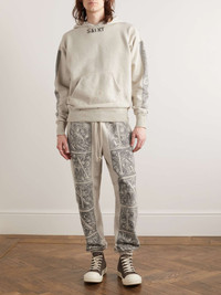 SAINT Mxxxxxx's hoodie is made in collaboration with Denim Tears, a label inspired by the African American diaspora. It's cut from distressed cotton-jersey and printed with classical etching on the back and sleeves. Wear it with faded jeans and sneakers. Size & Fit - Model wears a size larger to achieve a looser fit - Ribbed hem - Mid-weight, slightly stretchy fabric - Model is shown wearing a M - Model measures: chest 36"/ 92cm, height 6'2"/ 188cm Details & Care - Beige and grey cotton-jersey - 100% cotton - Hand wash - Made in Japan