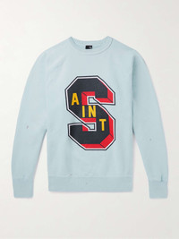 SAINT Mxxxxxx and Denim Tears' slightly distressed sweatshirt has been made in Japan from loopback cotton-jersey and printed with collegiate-inspired lettering at the front and back. Wear it with sweatpants or smarten it up with chinos and loafers. Size & Fit - Fits true to size. Take your normal size - Designed for a regular fit - Mid-weight, slightly stretchy fabric - Model is shown wearing a M - Model measures: chest 38"/ 96cm, height 6'2"/ 188cm Details & Care - Multicoloured loopback cotton-jersey - 100% cotton - Hand wash - Made in Japan