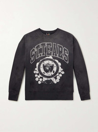 Saint Mxxxxxx's sweatshirt is designed in collaboration with New York-based streetwear label Denim Tears. It's been made in Japan from distressed cotton-jersey and printed with a collegiate-inspired 'Saint Tears' logo, surrounded by Tremaine Emory's iconic 'Cotton Wreath' crest. Size & Fit - Fits true to size. Take your normal size - Designed for a slightly loose fit - Mid-weight, stretchy fabric - Model is shown wearing a M - Model measures: chest 38"/ 96cm, height 6'1"/ 185cm Details & Care - Charcoal and off-white cotton-jersey - 100% cotton - Hand wash