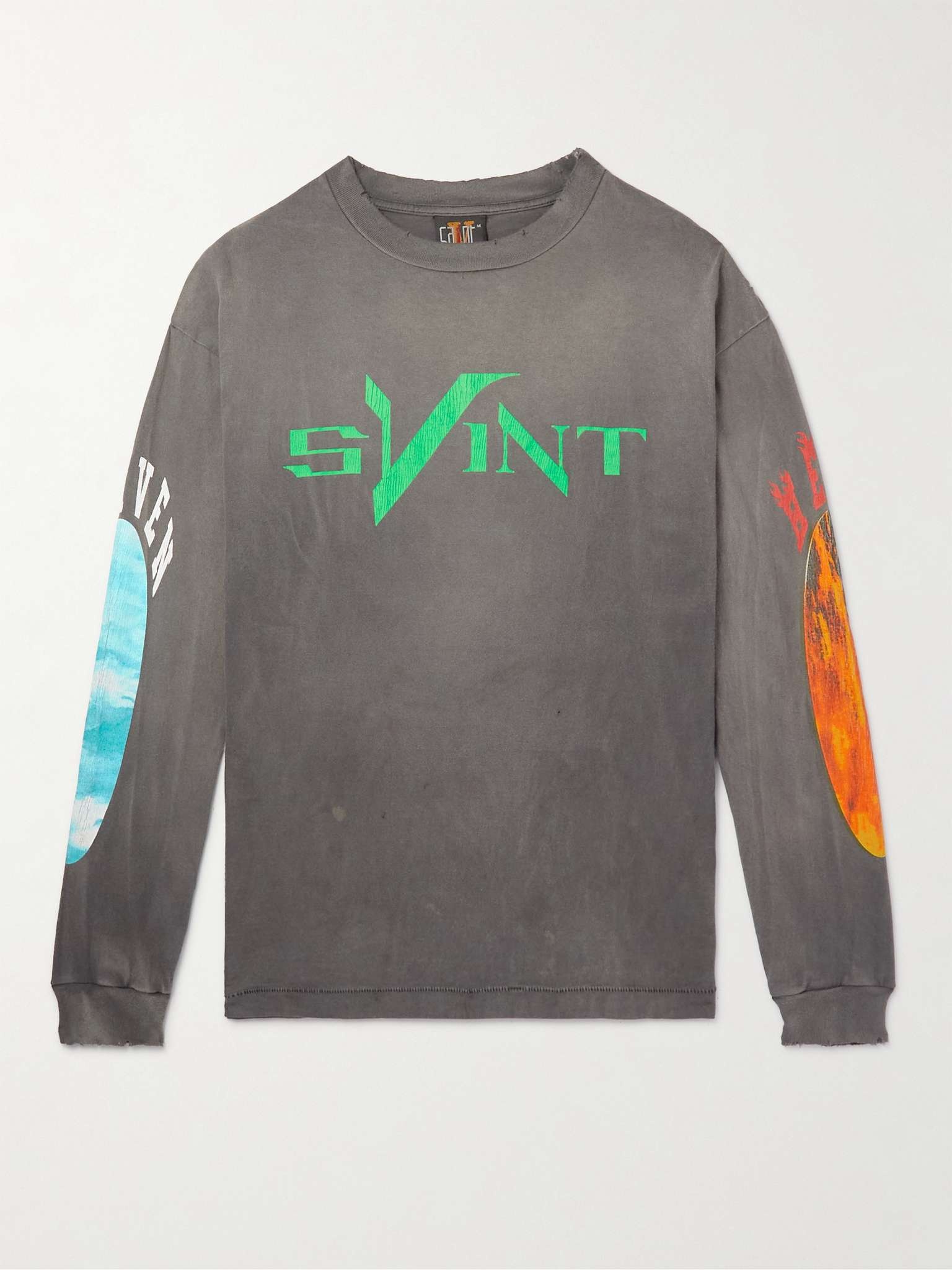 Spiritual references are key to this collaborative collection between SAINT Mxxxxxx and VLONE. Case in point, this cotton-jersey T-shirt is printed with mystic imagery throughout. It's cut for a relaxed fit and distressed for a lived-in feel. Size & Fit - Fits true to size. Take your normal size - The model is wearing a size larger to achieve a looser fit - This T-shirt is intended for a slightly loose fit - Lightweight, slightly stretchy fabric - Model wears a M - Model measures: chest 36"/ 92cm, height 6'2"/ 188cm Details & Care - Multicoloured cotton-jersey - 100% cotton - Machine wash - Made in Japan