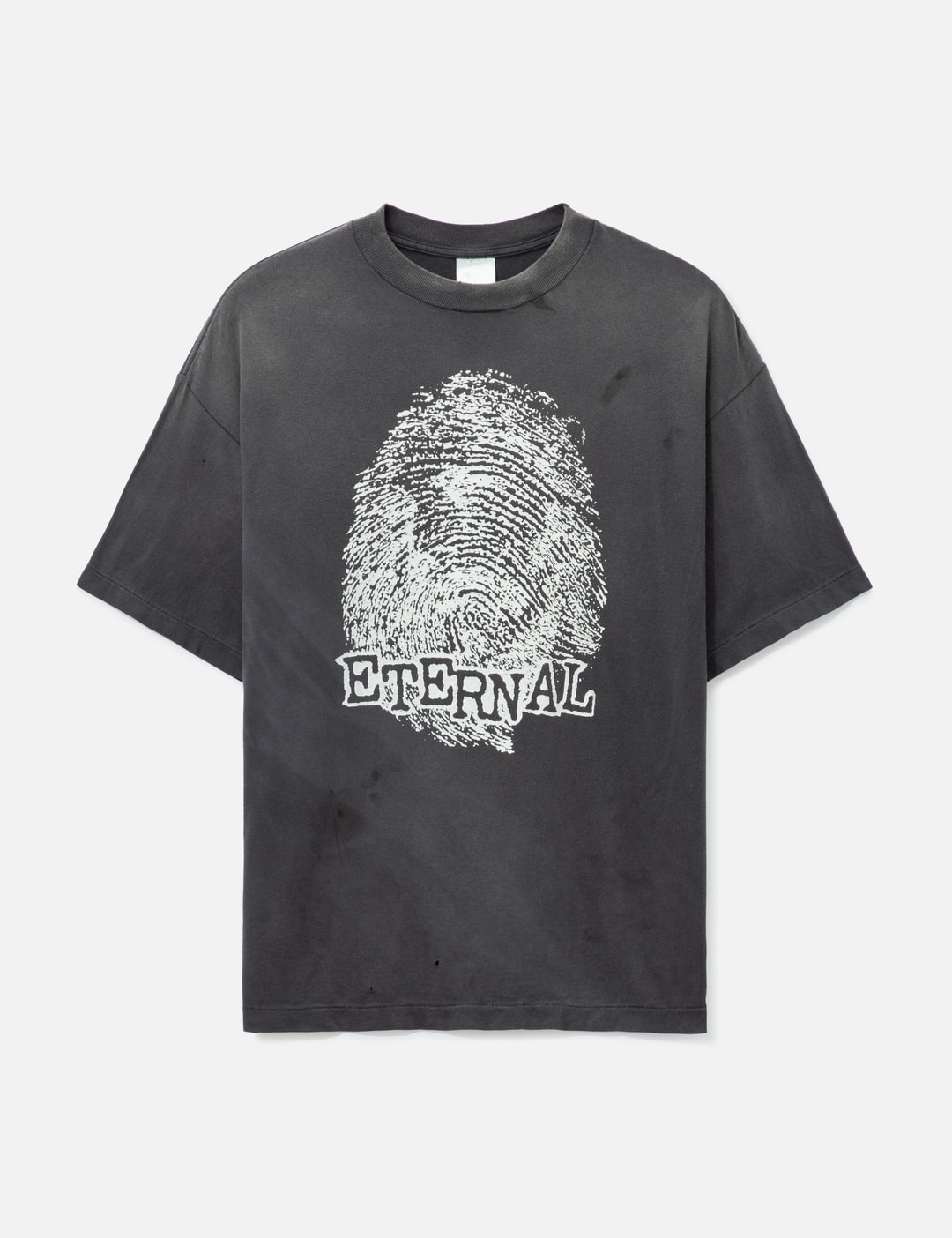 - Saint Michael - Chosen T-shirt - Heavy-washed cotton fabric - Vintage finish - Graphic print at front and rear - Heavy distressing with intentional stains and holes throughout - Due to the vintage process colors and staining will vary - Straight hem - Color: Black - Material: 100% Cotton - See more SS T-Shirts, T-Shirts and Clothing SIZING - Model wears size M - Model measures: Height 184cm, Chest 29"/73cm, Waist 24"/62cm, Hip 35"/90cm