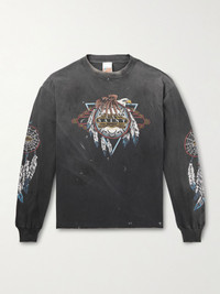 + TEFLON DISCO Distressed Printed Cotton-Jersey T-Shirt Black