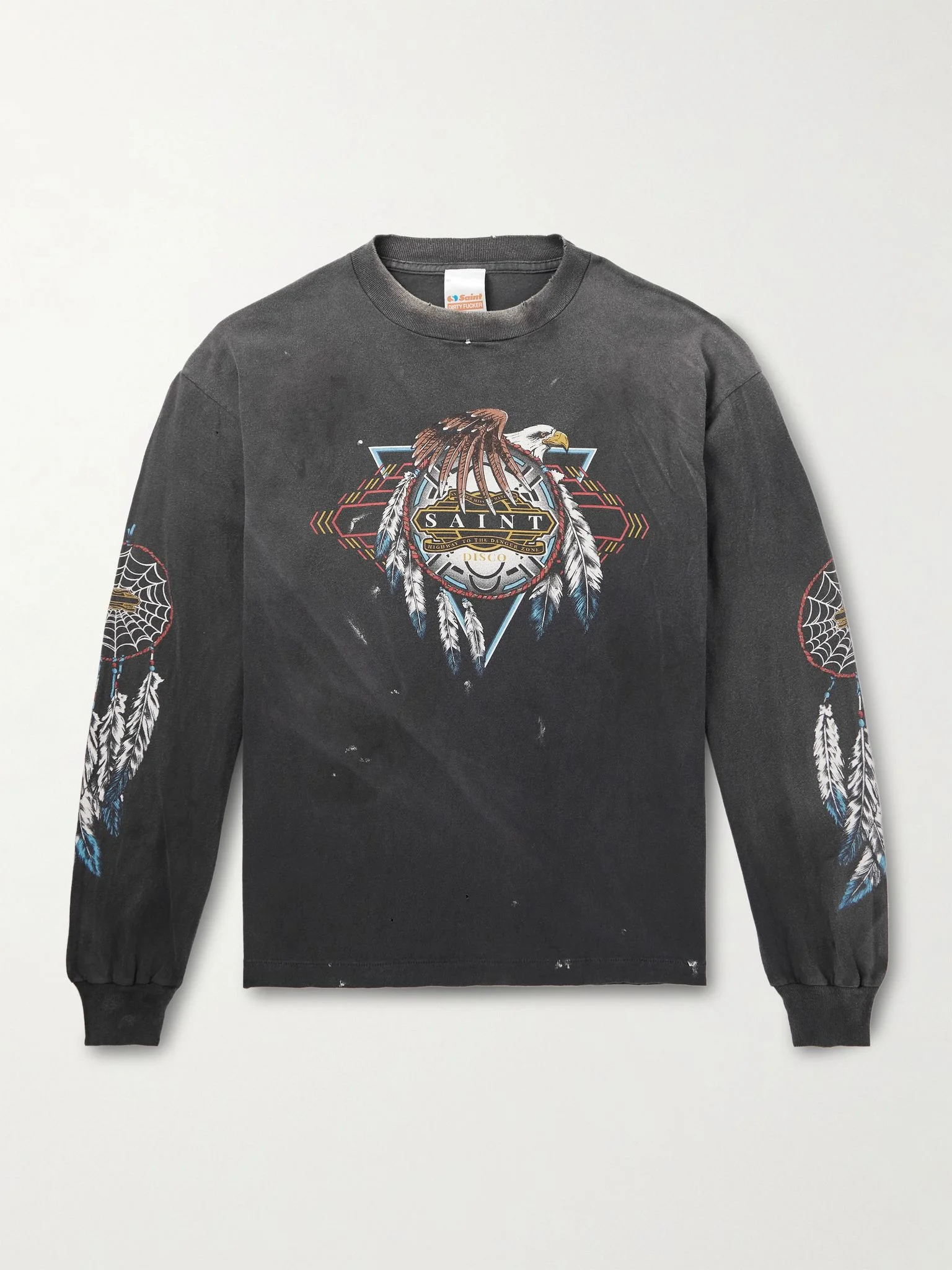 Made in collaboration with streetwear label TEFLON DISCO, SAINT Mxxxxxx says this T-shirt is all about "bold energy and effortless style". It's cut for a relaxed fit from soft cotton-jersey and has a faded wash. Size & Fit - Fits true to size. Take your normal size - Designed for a relaxed fit - Mid-weight, stretchy fabric - Model is shown wearing a M - Model measures: chest 38"/ 96cm, height 6'0"/ 183cm Details & Care - Black cotton-jersey - 100% cotton - Dry clean