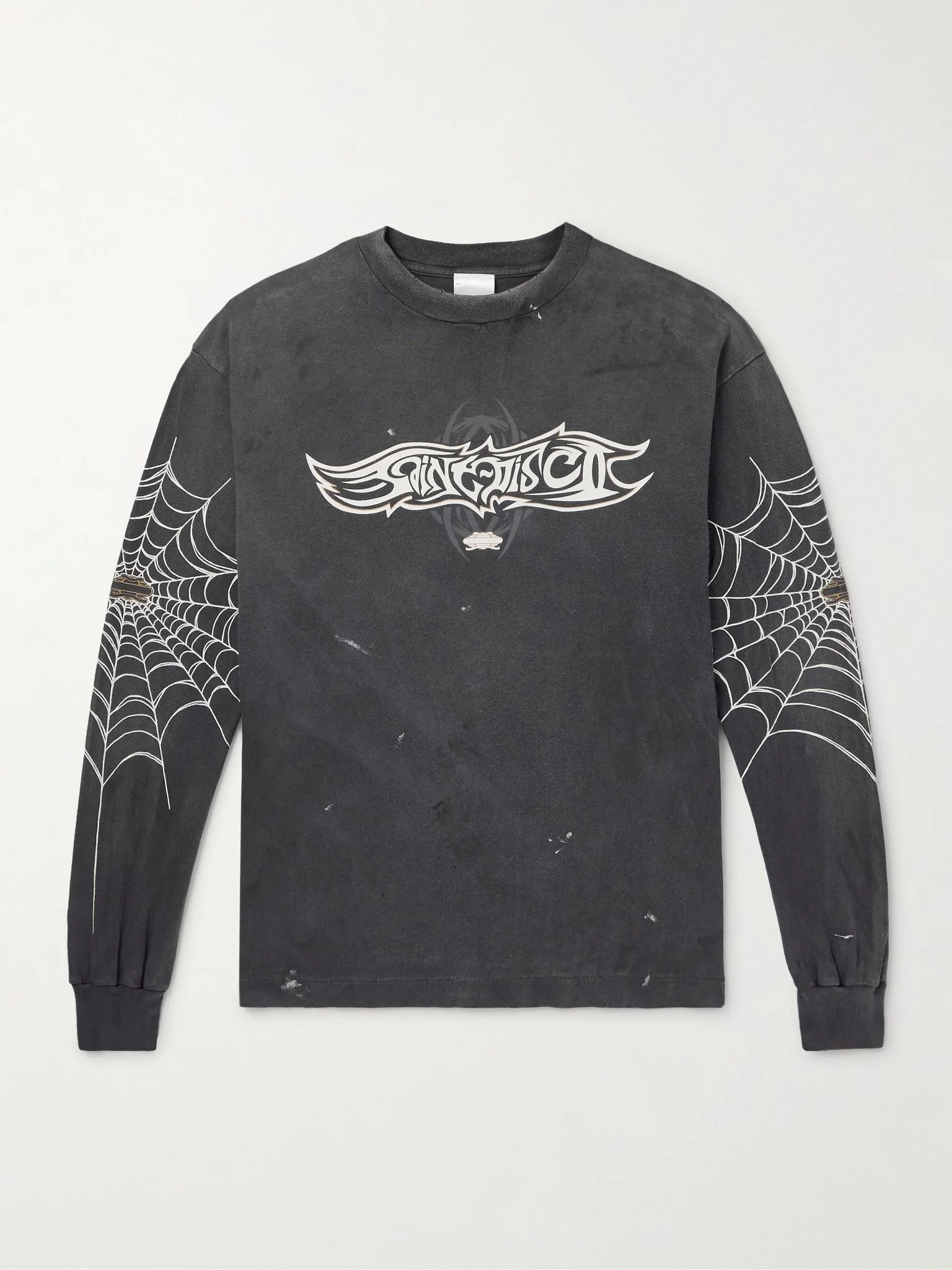 + TEFLON DISCO Distressed Printed Cotton-Jersey T-Shirt Black