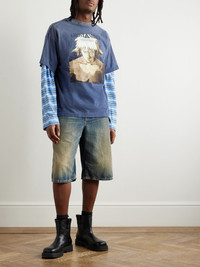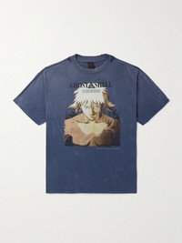 + Ghost in the Shell Distressed Printed Cotton-Jersey T-Shirt Navy