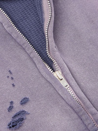 SAINT Mxxxxxx looks back at vintage designs when dreaming up new collections, and this oversized hoodie certainly has a certain pre-loved charm to it. Heavily distressed with intentional holes and rips, it's made from cotton-jersey that's washed to achieve its faded appearance. Size & Fit - Intended to be oversized; we recommend sizing down if you prefer a closer fit - Mid-weight, slightly stretchy fabric - Model is shown wearing a M - Model measures: chest 38"/ 96cm, height 6'2"/ 188cm Details & Care - Navy cotton-jersey - Zip fastening - 100% cotton - Hand wash