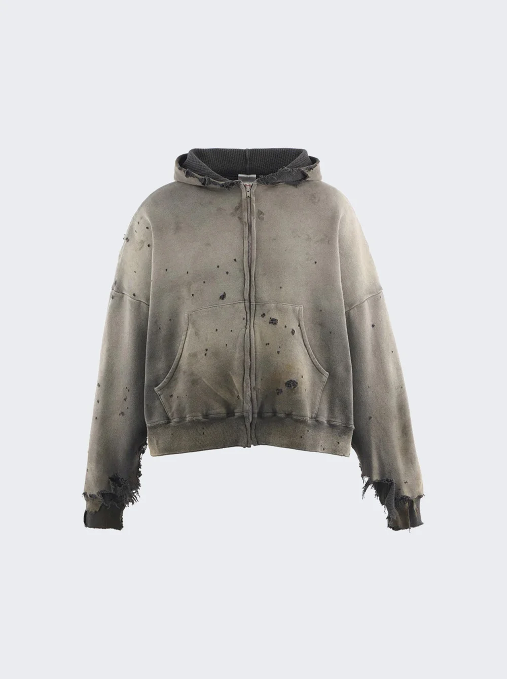 Details - Heavily distressed fleece hoodie - Rips and tears throughout - Inner thermal layer - Material: 100% Cotton Vendor Color Code: Brand Style: SM-HR1-0000-056 Designer/Brand: SAINT MXXXXXX