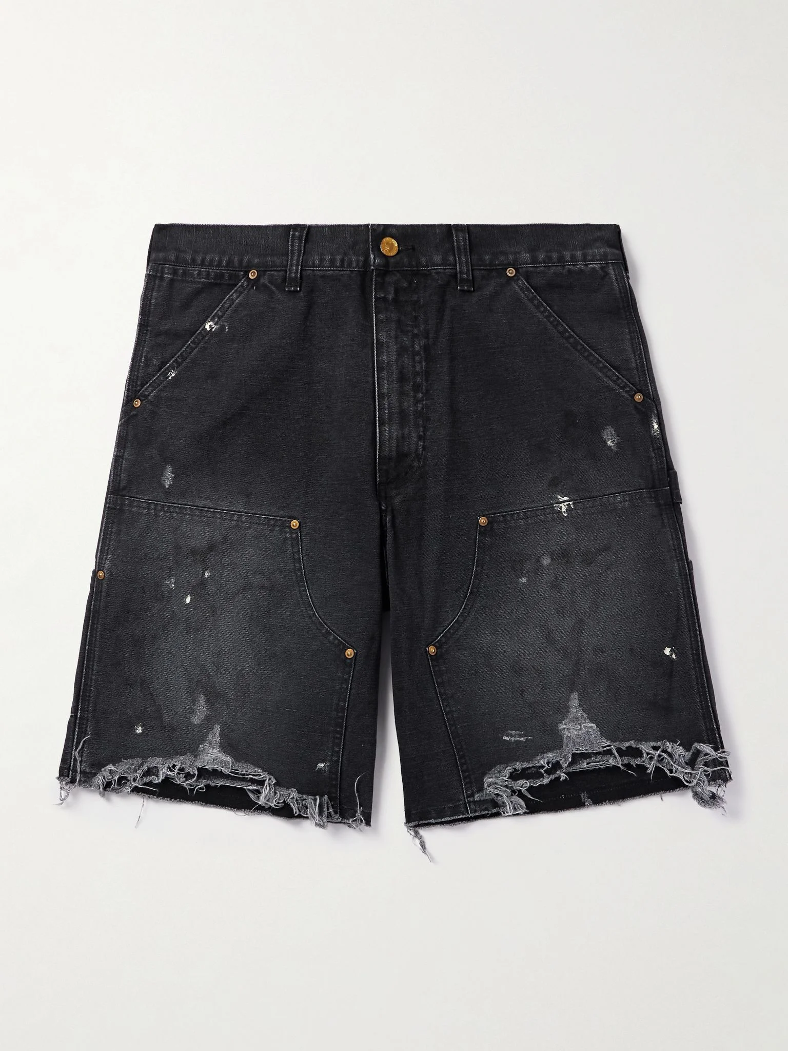 SAINT Mxxxxxx's shorts are designed to look like an authentic thrift store find. Taking cues from classic workwear, they're cut straight from panels of washed denim, lightly flecked with paint splatters and have heavily frayed hems. Size & Fit - Fits true to size, however those who are between sizes should take the larger size - Relaxed-straight leg, low-crotch style - Mid-weight, non-stretchy denim - Model is shown wearing a M - Model measures: waist size 32, height 6'0"/ 183cm Details & Care - Black cotton - Button and zip fastening - 100% cotton - Hand wash