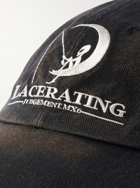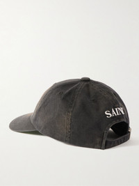 SAINT Mxxxxxx's six-panel baseball cap is embroidered with its 'Lacerating' motif, inspired by a popular animation studio's logo. It's been made in Japan from cotton-twill and is overdyed for a vintage look. Details & Care - Black and brown cotton-twill - 100% cotton - Dry clean