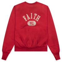 Saint Michael’s distinct aesthetic is present in the Faith Crew Sweater. The cotton-cut silhouette spotlights ribbed detailing at the trims along with hand-applied distressing. The faded logo branding at the chest complements the look. - 100% cotton - Hand-applied distressing - Ribbed trims - Printed logo branding - Style No: SM-A22-0000-020