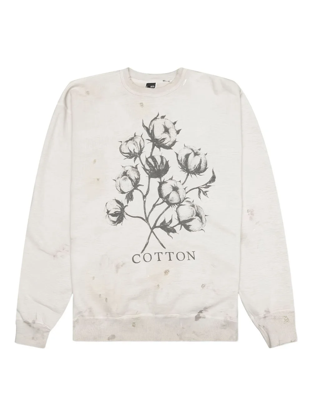 cotton-print long-sleeves sweatshirt Highlights - Grey - Cotton plant print - Excellence lettering - Distressed effect - Crew neck - Long sleeves Imported Composition Fabric 100% Washing instructions Read Manufacturer Guidelines