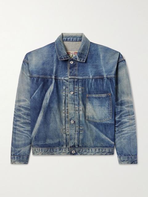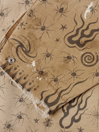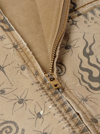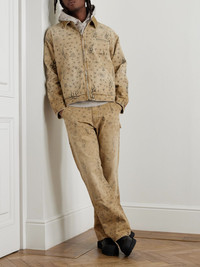 SAINT Mxxxxxx's jacket is printed with cool artwork by legendary tattooist Dr. Woo. Inspired by vintage workwear, it's cut in a boxy shape from distressed cotton-canvas and trimmed with corduroy at the collar. Small to size. See Size & Fit notes. Size & Fit - Fits small to size. Take one size larger than normal - Designed for a boxy fit - Rigid, non-stretchy fabric - Model is shown wearing a L - Model measures: chest 38"/ 96cm, height 6'0"/ 183cm Details & Care - Beige and black cotton-canvas, beige corduroy - Zip fastening - 100% cotton - Hand wash