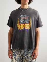 SAINT Mxxxxxx and Neighborhood draw inspiration from traditional biker culture for their capsule collection. One of seven styles released, this T-shirt has been made in Japan from faded, distressed, paint-splattered cotton-jersey and is printed with a signature bold slogan. Details & Care - Multicoloured cotton-jersey - 100% cotton - Hand wash