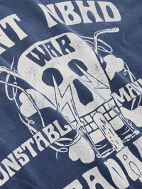 SAINT Mxxxxxx joins forces with Neighborhood for a seven-piece capsule inspired by motorcycle culture. This distressed T-shirt has been made in Japan from cotton-jersey and features a bold print riffing on club members' 'colors'. Size & Fit - Fits true to size. Take your normal size - Designed for a relaxed fit - Mid-weight, slightly stretchy fabric - Model is shown wearing a M - Model measures: chest 38"/ 96cm, height 6'2"/ 188cm Details & Care - Blue and white cotton-jersey - 100% cotton - Hand wash