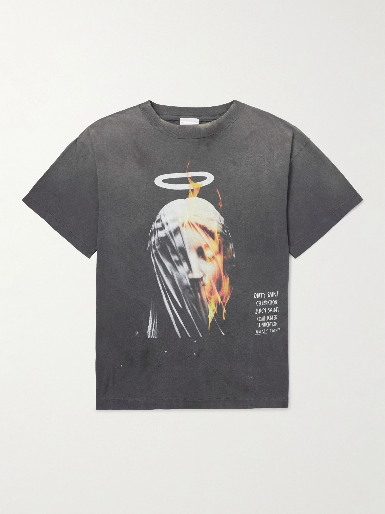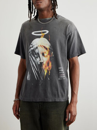 Angel Tee Distressed Printed Cotton-Jersey T-Shirt Black