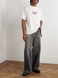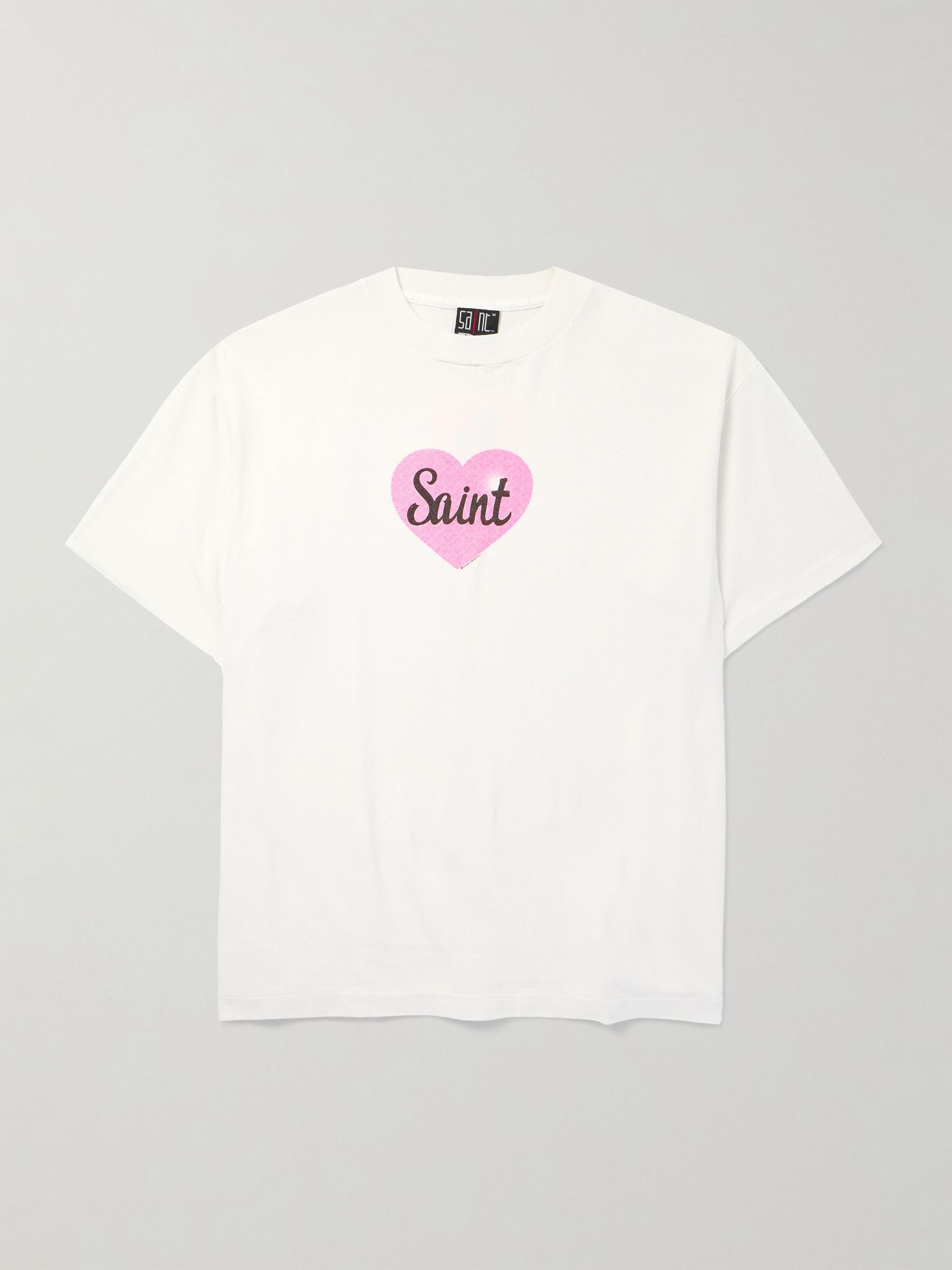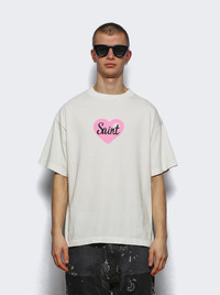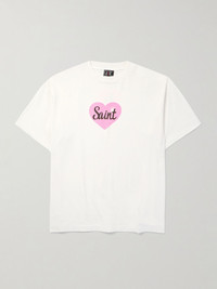 SAINT Mxxxxxx's T-shirt features a bright pink heart on the chest and signature religious iconography on the back. It's been made in Japan from breathable cotton-jersey and is cut for a relaxed fit, complete with a boxy hem and dropped shoulder seams. Size & Fit - Fits true to size. Take your normal size - Designed for a relaxed fit - Mid-weight, stretchy fabric - Model is shown wearing a M - Model measures: chest 38"/ 96cm, height 6'0"/ 183cm Details & Care - White, pink and black cotton-jersey - 100% cotton - Machine wash