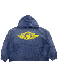 logo-print hoodie Highlights - Navy blue - Cotton - Jersey texture - Bleached effect - Logo print to the rear - Slouchy hood - Graphic print to the front - Long sleeves - Front pouch pocket - Ribbed cuffs and hem Imported Composition Cotton 100%