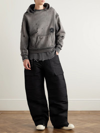 SAINT Mxxxxxx's hoodie is heavily distressed so it resembles a much-loved piece of streetwear. It's cut from cotton-jersey in a relaxed profile and appliqued with a logo patch above the pouch pocket. Style yours with baggy jeans and sneakers. Size & Fit - Fits true to size. Take your normal size - Designed for a relaxed fit - Slightly short in length - Mid-weight, slightly stretchy fabric - Model is shown wearing a M - Model measures: chest 38"/ 96cm, height 6'2"/ 188cm Details & Care - Tonal-grey cotton-jersey - 100% cotton - Machine wash
