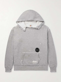 Logo-Appliquèd Distressed Cotton-Jersey Hoodie