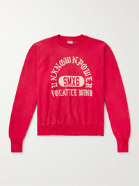 SAINT Mxxxxxx replaces collegiate lettering with supernatural slogans on this sweatshirt. Printed with the phrases "Unknown Power" and "Volatile Wind", it's made from loopback cotton-blend jersey and has dropped shoulder seams for an effortless look. Size & Fit - Model wears a size larger to achieve a looser fit - Dropped shoulder seam - Ribbed hem - Mid-weight, slightly stretchy fabric - Model is shown wearing a M - Model measures: chest 36"/ 92cm, height 6'2"/ 188cm Details & Care - Red and beige loopback cotton-blend jersey - 89% cotton, 8% polyester, 3% rayon; lining: cotton 88%, rayon 12% - Machine wash
