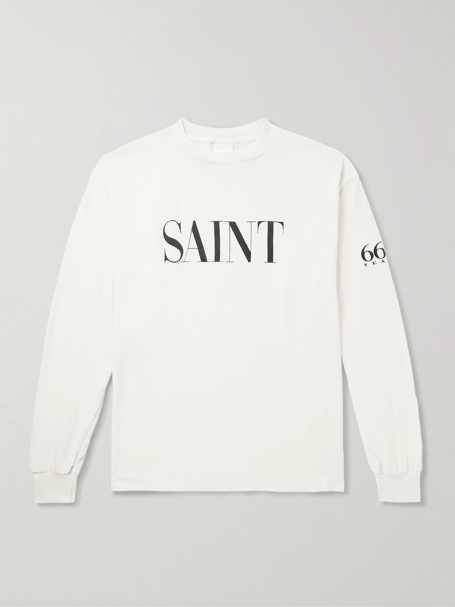 Fans of Japanese streetwear will recognise the branding on SAINT Mxxxxxx's T-shirt. It's cut from cotton-jersey in a slouchy shape with dropped shoulders. Team yours with wide-leg denim. Size & Fit - Fits true to size. Take your normal size - Designed for a relaxed fit - Lightweight, stretchy fabric - Model is shown wearing a M - Model measures: chest 38"/ 96cm, height 6'2"/ 188cm Details & Care - White and black cotton-jersey - 100% cotton - Hand wash