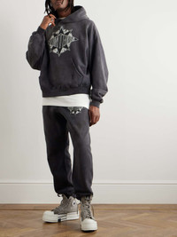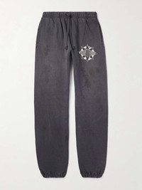 From SAINT Mxxxxxx's collab with Denim Tears, these sweatpants are printed with a logo combining both brands' names at the thigh. They're made from sulphur-dyed cotton-jersey that's stonewashed for softness and cut with a gentle taper. The process continues as you wear and wash them, creating a truly worn-in look and feel. Size & Fit - Fits true to size. Take your normal size - Tapered leg, low-crotch style - Adjustable at the waist - Mid-weight, slightly stretchy fabric - Model is shown wearing a M - Model measures: waist size 32, height 6'0"/ 183cm Details & Care - Faded-black and white cotton-jersey - 100% cotton