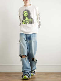 SAINT Mxxxxxx is the name to know for irreverent graphic tees. This T-shirt is made from cotton-jersey and printed with a religious image and the label's branding down the sleeves, just like skater styles. Size & Fit - Model wears a size larger to achieve a looser fit - Lightweight, slightly stretchy fabric - Model is shown wearing a M - Model measures: chest 36"/ 92cm, height 6'2"/ 188cm Details & Care - White, black and neon-yellow cotton-jersey - 100% cotton - Hand wash