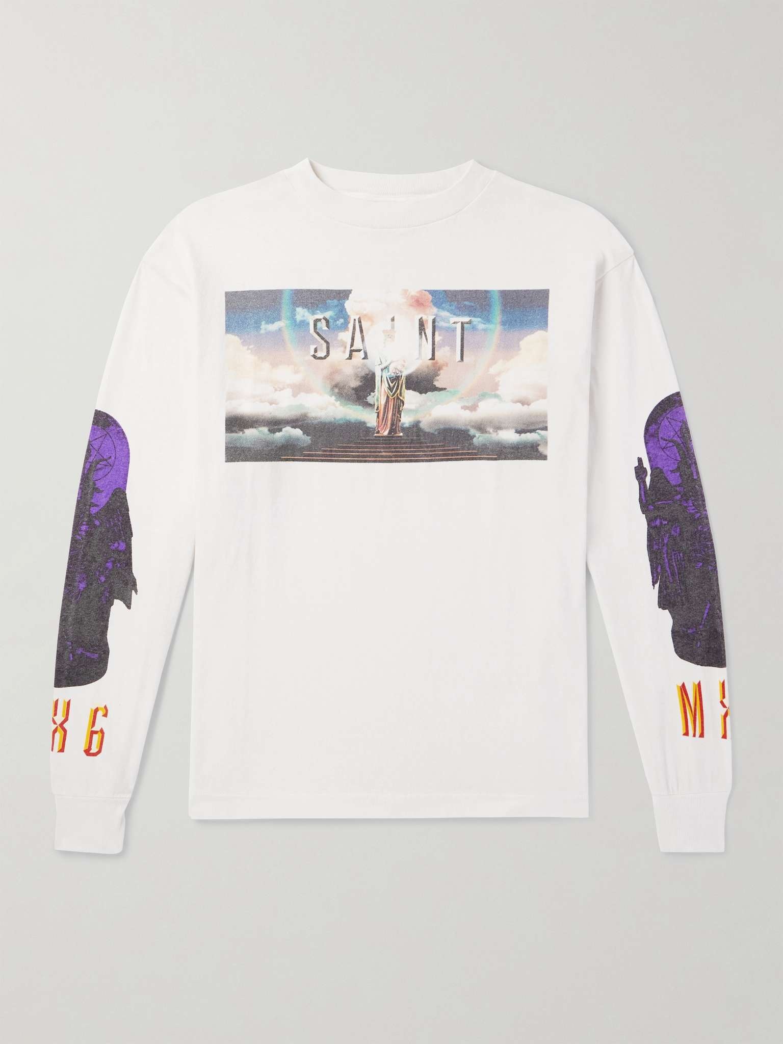 SAINT Mxxxxxx's T-shirt riffs on iconic Hollywood iconography. It's made from cotton-jersey and has slightly dropped shoulder seams for a more relaxed fit. Size & Fit - Model wears a size larger to achieve a looser fit - Mid-weight, slightly stretchy fabric - Model is shown wearing a M - Model measures: chest 36"/ 92cm, height 6'2"/ 188cm Details & Care - Multicoloured cotton-jersey - 100% cotton - Hand wash