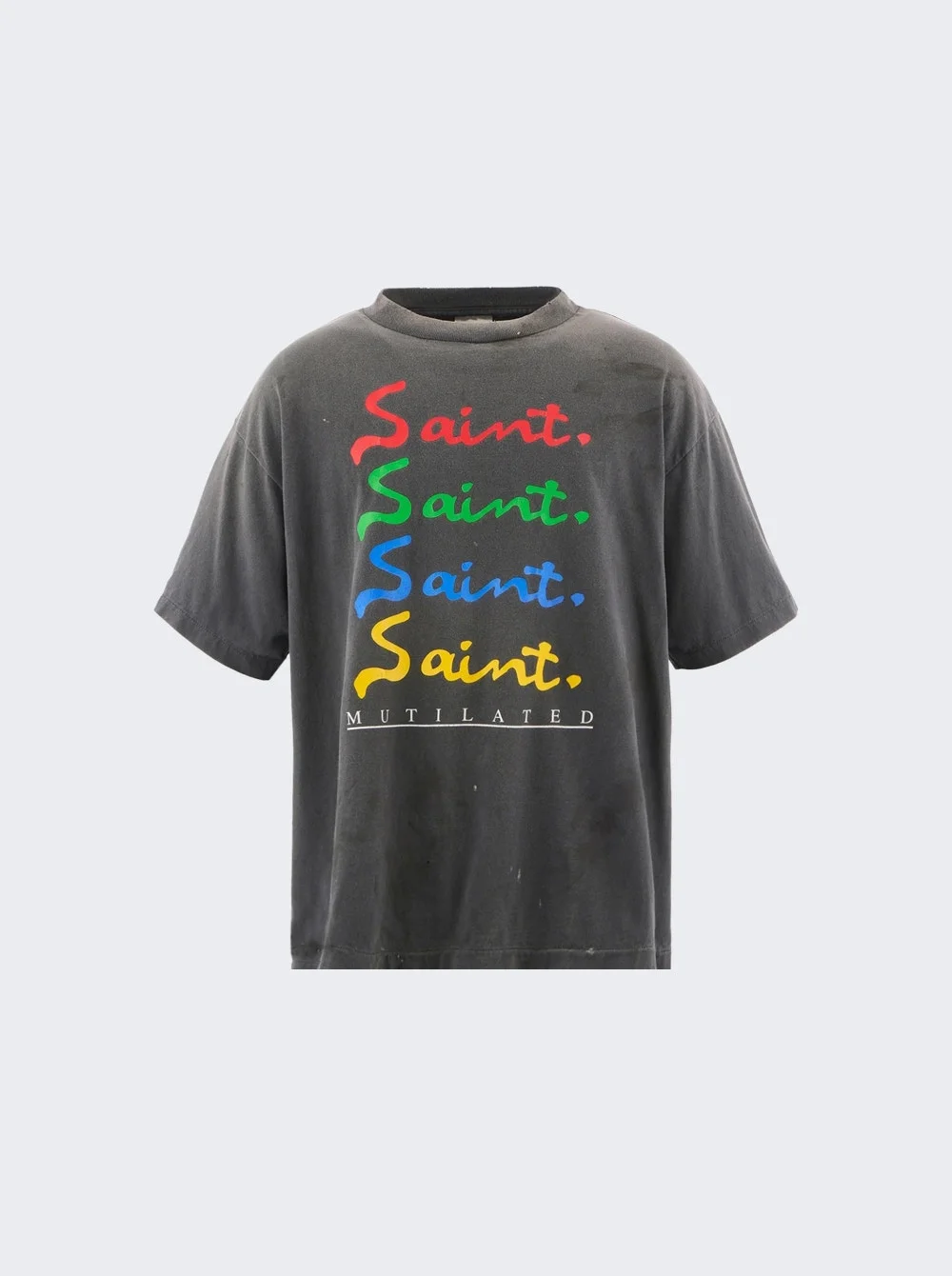 Details - Relaxed fit, short sleeve t-shirt - Heavily faded and distressed throughout - Graphic print on front - Material: 100% Cotton Size Information: Vendor Color Code: Brand Style: SM-HR1-0000-013 Designer/Brand: SAINT MXXXXXX