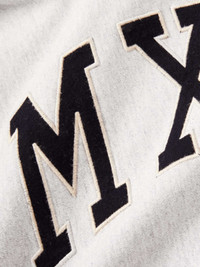 SAINT Mxxxxxx's designs are based on the kind of pieces you might find in an American vintage store. This 'MX6' hoodie is cut from cotton-blend jersey for a loose fit and appliquéd with a varsity-style logo. Size & Fit - Model wears a size larger to achieve a looser fit - Mid-weight, stretchy fabric - Model is shown wearing a M - Model measures: chest 36"/ 92cm, height 6'1"/ 185cm Details & Care - Grey and navy cotton-blend jersey - 80% cotton, 12% rayon, 8% polyester - Machine wash