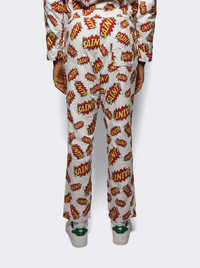 Details - Elasticized waistband with adjustable drawstring - Straight leg - Relaxed fit - Comic-style 'Saint' graphic print allover Dimensions: Model is 6'1"/185cm and is wearing a size M Composition: cotton Brand Style: SM-A22-0000-028 Designer/Brand: SAINT MICHAEL