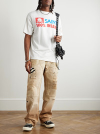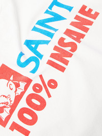 SAINT Mxxxxxx is no stranger to tongue-in-cheek graphics. This T-shirt is printed with a mischievous devil accompanied by text that reads '100% insane'. It's cut from cotton-jersey for a loose, relaxed fit. Size & Fit - Fits true to size. Take your normal size - Designed for a loose fit - Mid-weight, stretchy fabric - Model is shown wearing a M - Model measures: chest 38"/ 96cm, height 6'0"/ 183cm Details & Care - White, red and blue cotton-jersey - 100% cotton - Dry clean