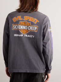 SAINT Mxxxxxx's T-shirt is printed with a slew of macabre slogans, including 'evil spirit' and 'fallen saint'. It's made from soft cotton-jersey and finished with lightning-struck logos on the sleeves. Size & Fit - Model wears a size larger to achieve a looser fit - Mid-weight, slightly stretchy fabric - Model is shown wearing a M - Model measures: chest 36"/ 92cm, height 6'2"/ 188cm Details & Care - Multicoloured cotton-jersey - 100% cotton - Hand wash - Made in Japan