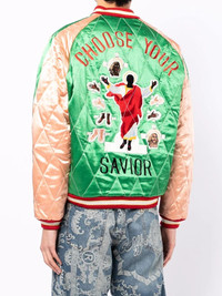 embroidered-slogan bomber jacket multicolor cotton embroidered design stand-up collar front zip fastening long sleeves ribbed cuffs two front welt pockets ribbed hem Imported Composition Cotton 100%, Acetate 100% SIZE & FIT Model measurements Height 6 ft 2 in(1.87 m) Bust/Chest 34.25 in(87 cm) Hips 36.22 in(92 cm) Waist 29.52 in(75 cm) FittingInformation This piece fits true to size. We recommend you get your regular size Cut for a loose fit Made with a mid-weight non-stretch fabric