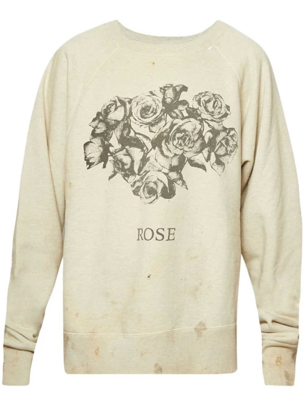 Rose-print crew-neck sweatshirt SAINT MXXXXXX showcases its passion for vintage clothes in this crew-neck sweatshirt. It's made from a soft cotton jersey with a distressed effect and finished with graphic prints at the front and rear. Highlights - Light beige/dark grey - Cotton - Distressed effect - Floral print to the front - Graphic print to the rear - Crew neck - Long sleeves - Ribbed cuffs and hem Imported Composition Cotton 100%