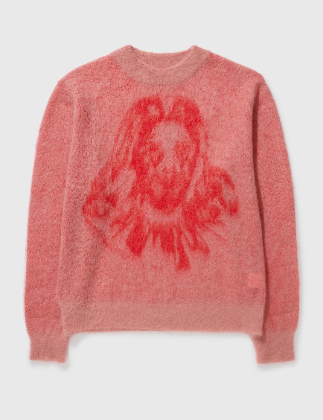- Saint Michael - Saint Michael x Born X Raised Clown Knit Sweatshirt - Brushed mohair knit exterior - Woven graphic at front - Ribbed crewneck, cuffs and hem - Color: Pink - Material: Mohair - See more Knitwear and Clothing SIZING - Model wears size L - Model measures: Height 190cm, Bust 34"/84cm, Waist 28"/70cm, Hips 35"/90cm
