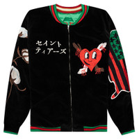 The Saint Michael x Sukajyan Reversible Jacket is an essential vintage outerwear item to keep within your rotation. Featuring an acetate construction at the front, religious patchwork makes an appearance. A full-zip closure appears alongside the side pockets. Stretchy ribbed detailing is placed at the neckline, cuffs, and hem. Additional patchwork and embroidered detailing is placed on the reverse side that is crafted from cotton. - Acetate/cotton construction - Full-zip closure - Patchwork - Embroidered branding - Ribbed neckline - Ribbed cuffs - Ribbed hem - Zip closure - Side pockets - Style No: SM-S22-0000-059-GRN